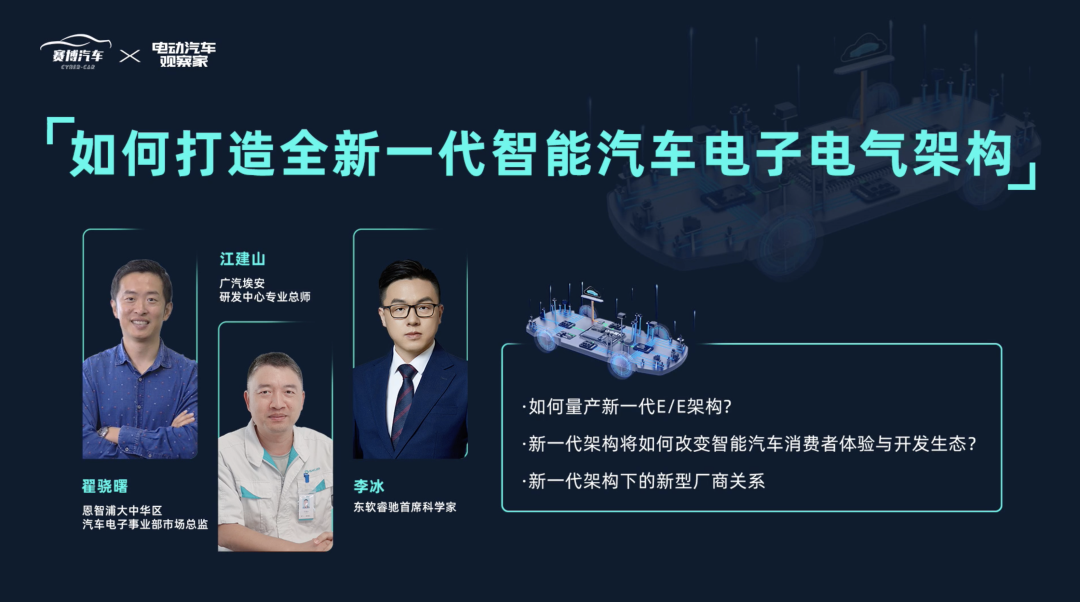 近日,東軟睿馳首席科學(xué)家李冰、廣汽埃安研發(fā)中心專業(yè)總師江建山、恩智浦大中華區(qū)汽車電子事業(yè)部市場總監(jiān)翟驍曙一同受邀參加《賽博汽車》&《電動汽車觀察家》 “如何打造全新一代智能汽車電子電氣架構(gòu)”主題研討會,三位專家對E/E架構(gòu)的域融合趨勢演進(jìn)、從概念到量產(chǎn)中OEM與軟硬件供應(yīng)商遇到的挑戰(zhàn)及落地過程實踐經(jīng)驗進(jìn)行分享交流。
