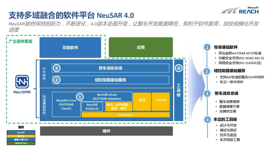 同時,在全新E/E架構(gòu)開發(fā)實踐過程中,東軟睿馳提出了本土化基礎(chǔ)軟件平臺應(yīng)發(fā)揮“承上啟下 繼往開來”的作用,助力車企解決域控制器架構(gòu)下多核異構(gòu)芯片的統(tǒng)一開發(fā)視圖問題。