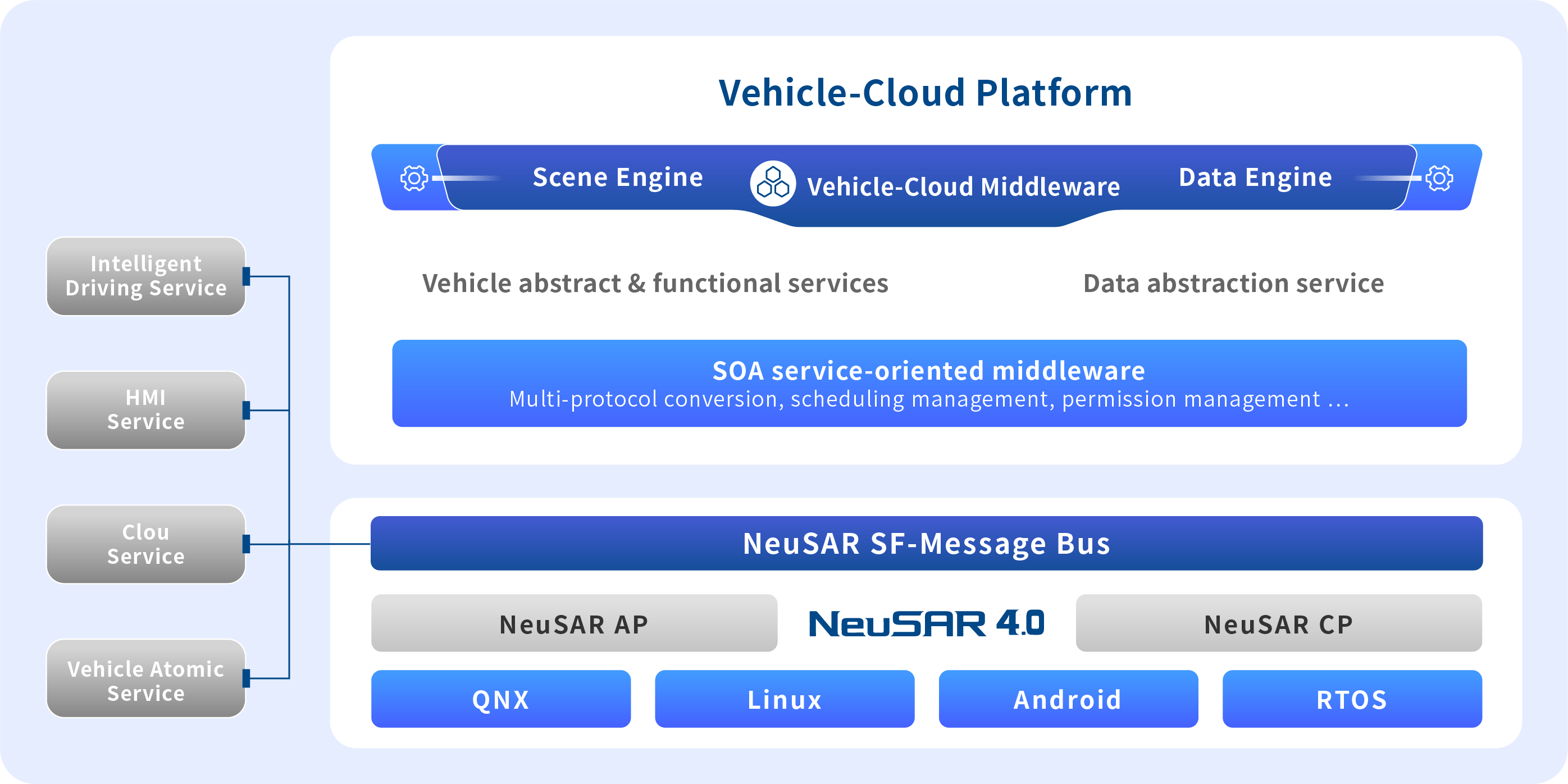 Oriented towards the A core, based on the central computing architecture, building a vehicle level OS, and using a new software development method to achieve massive intelligent scene applications.